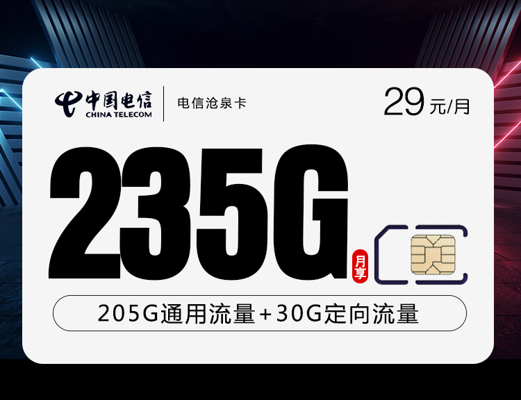 电信沧泉卡【29元235G流量+100分钟通话时长】
