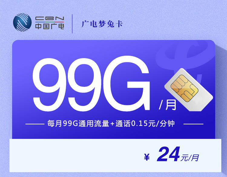 广电梦兔卡【 10月15日晚10点下单改为24元99G】产品套餐:24元99G原套餐29元/月,包含:通用流量30GB;套餐外流量5元/GB、国内通话优惠详情今